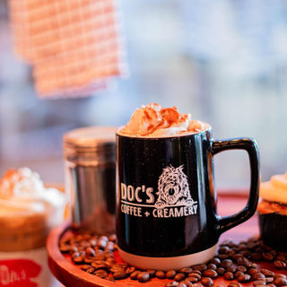 Doc's Coffee + Creamery, established in August of 2021, is in the original 1880's barn at the heart of Pickles Gap Village. Named after our mascot, Doc Holliday, the coffee drinking Portuguese Water Dog, who is there most days to greet his customers. This beautiful space with an eclectic interior full of cozy nooks and comforting fireplaces is a favorite spot for locals and travelers alike. Our robust menu full of food & drink has everything from sandwiches, salads, and soups, to every drink imaginable- not just coffee. We've even got local Arkansas Yarnell's ice cream, and a huge selection of handmade truffles and chocolates!
